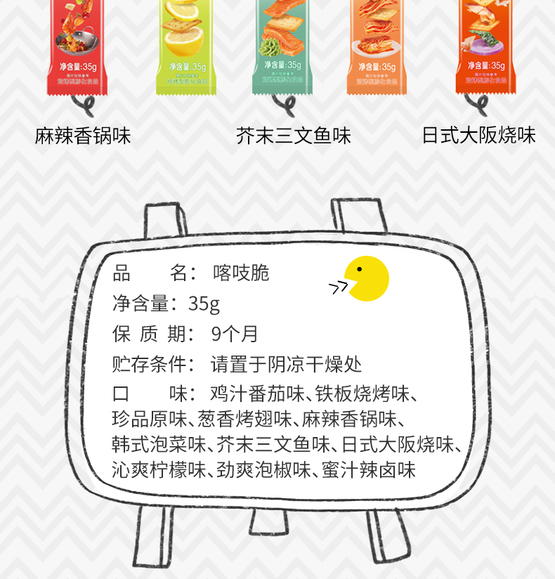 産(chan)品(pin)口味:麻辣香鍋味、韓式(shi)泡菜味、珍品(pin)原味、蔥香烤翅味、雞汁番茄味、鐵闆燒烤味、黑松露脆薯片(黑椒味)、芝士脆薯片(原味)